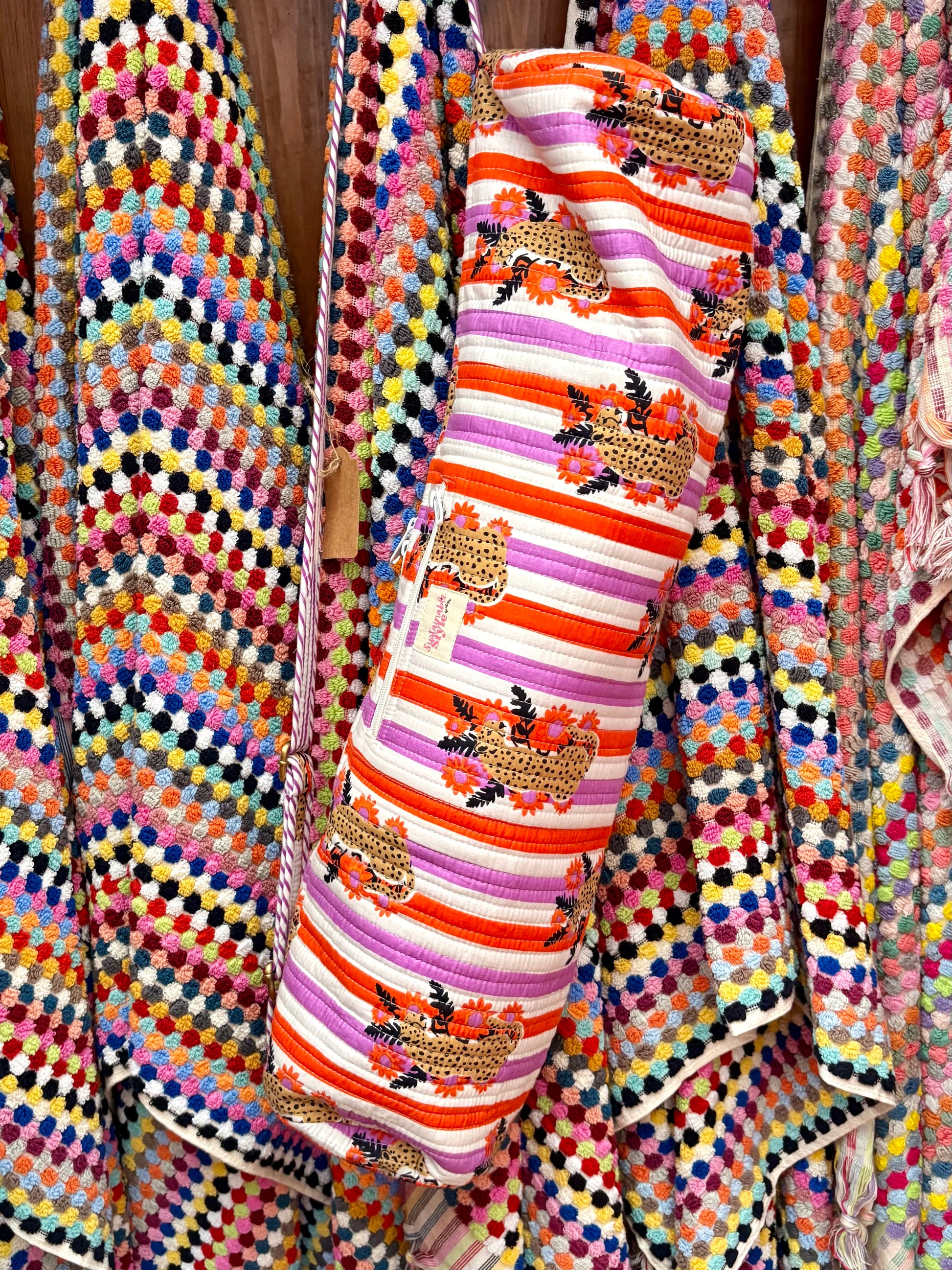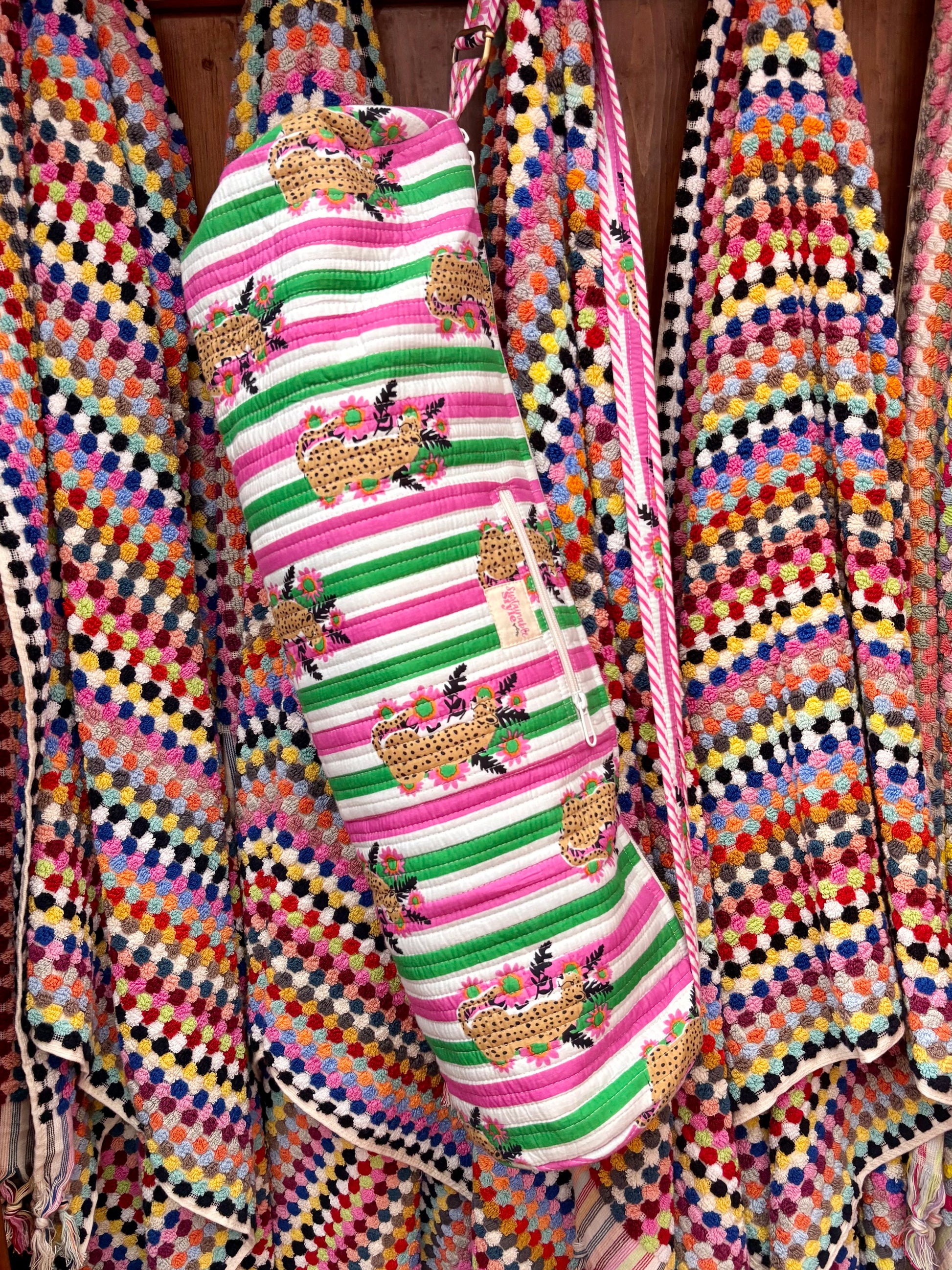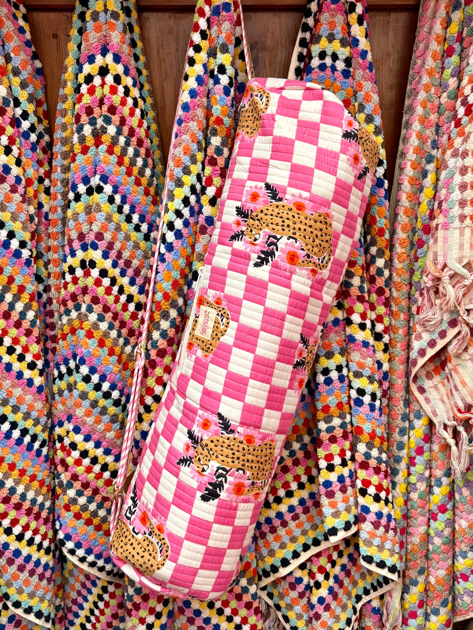 Our very own take on the yoga bag! Obviously we have given it our signature pop of animal print, with the cutest little leopards. As tested by hordes of happy customers at World Yoga Festival, Om Yoga & Verve this year, these are compatible with all standard size yoga mats. And, we've added a zip pocket for your gym card and bits and bobs.