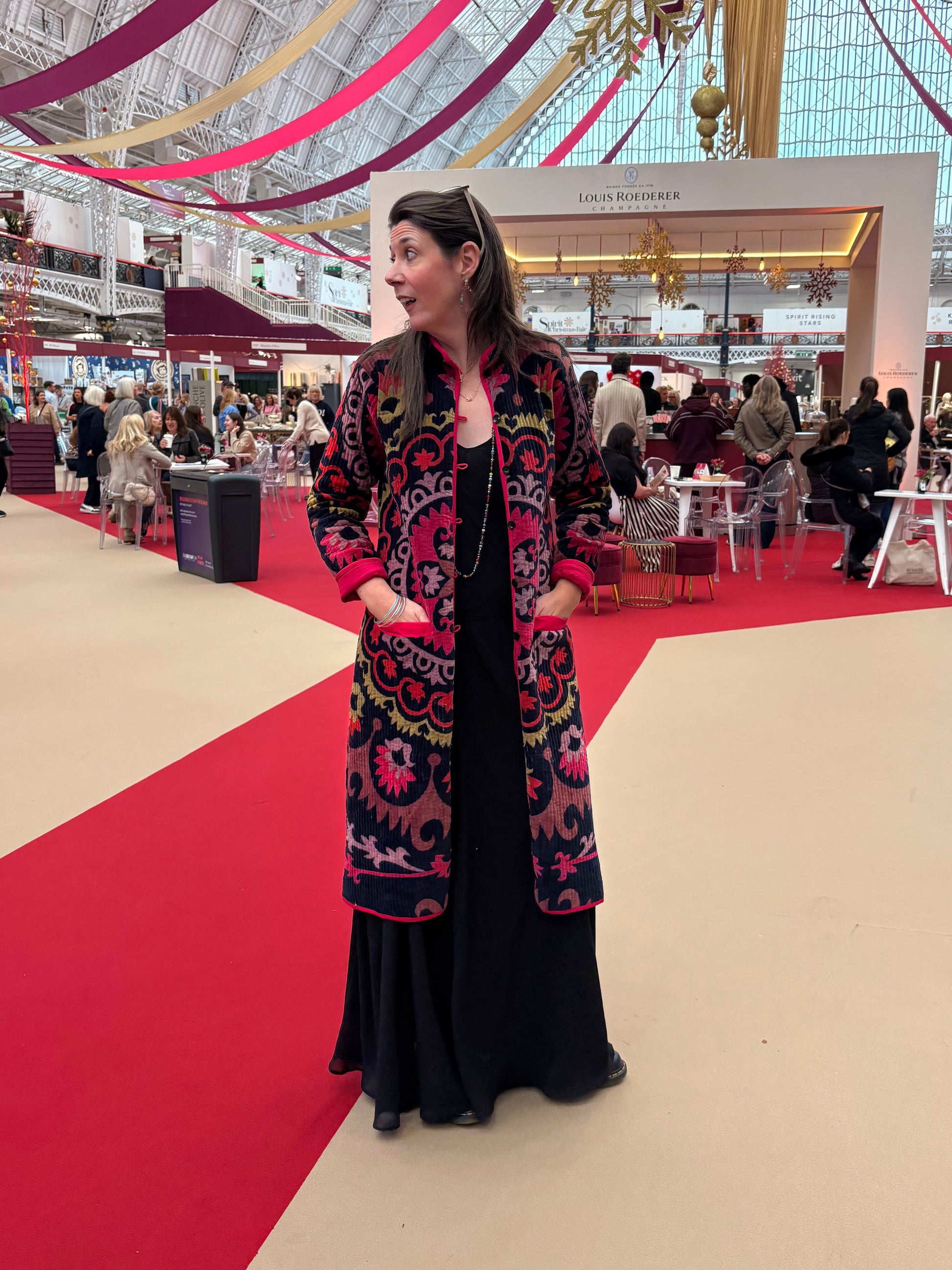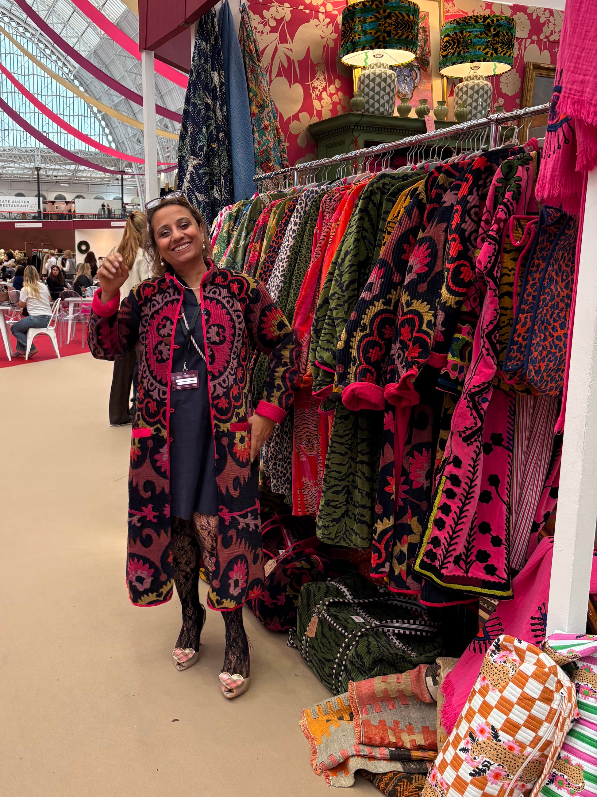 Designed by us & handmade by our artisan tailors in Jaipur, our totally delectable, super luxurious quilted Velvet Mocha coat combines detailed quilting with rich velvet & offers a weight & warmth that will keep you cosy on colder days. A limited edition drop available with original black or our latest super popular pink lining.
